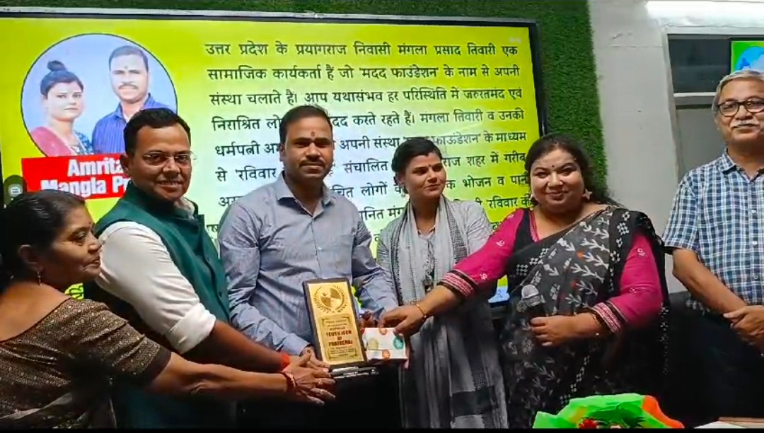 प्रयागराज निवासी मंगला प्रसाद तिवारी (Mangla Prasad Tiwari) और उनकी पत्नी अमृता तिवारी (Amrita Tiwari) को 'यूथ आईकॉन आफ प्रयागराज' सम्मान से नवाजा गया है। यह सम्मान उन्हें विशाल संकल्प 'नारी जागृति संस्थान' द्वारा बतौर मुख्य अतिथि के रूप में पहुंचे डा. धनंजय चोपड़ा जी (कोर्स को आर्डिनेटर सेंटर ऑफ मीडिया स्टडीज, इलाहबाद विश्व विद्यालय, प्रयागराज), श्री कुश श्रीवास्तव जी (उपाध्यक्ष - ओलंपिक एसोसिएशन, प्रयागराज मंडल) के हाथों समाजसेवा में लगातार उत्तकृष्ट कार्य किए जाने पर दिया गया है।